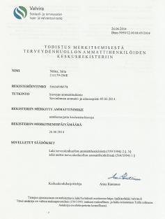 Свидетельство о регистрации в Валвира |